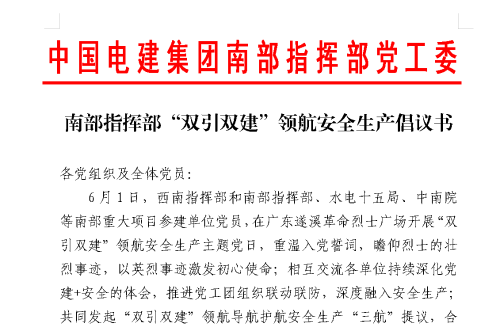6月1日,西南指挥部和南部项目指挥部、水电十五局、中南院等南部重大项目参建单位党员,在广东遂溪革命烈士广场联合开展“双引双建”领航安全生产主题党日,重温入党誓词,瞻仰烈士的壮烈事迹,以英烈事迹激发初心使命;相互交流各单位持续深化党建+安全的体会,推进党工团组织联动联防,深度融入安全生产;共同发起“双引双建”领航导航护航安全生产“三航”倡议,合力掀起争当安全生产好党员好标兵新热潮。携手建设单位、管理单位、全咨公司、监理单位、中咨公司等机构共同启动安全生产月,为党员安全生产示范岗、党员战疫督查队站台授旗,明确导向,引领项目安全生产和高质量建设。 倡议号召南部重大项目各参建单位在推进“双引双建”领航安全生产中,首先必须加强政治引领,推动思想先行,强化教育督导,坚持用习近平总书记以人民为中心、安全发展等新思想武装队伍,指导工作;提高站位,立足岗位,增强安全生产责任大于天的政治意识大局意识履责意识,始终做到如履薄冰,警钟常鸣,常抓不懈,久久为功,以安为荣,充分发挥战斗堡垒和党员干部带头带动作用;通过经常性学习教育和阶段性技能培训、预防演练等方式,深入贯彻落实大安全观,切实提高队伍安全生产素质和能力,共筑项目安全建设的命运共同体和同心圆,确保生产安全,员工安康,队伍安定,家人安心。 倡议号召南部重大项目各参建单位在推进“双引双建”导航安全生产中,首先必须加强示范引导,培育树立一批党员安全生产示范岗、常态化防疫抗疫先进单位,严防严控疫情风险,全力筑牢疫情防控安全防线,推动全项目全过程全员实现安全生产零事故和疫情防控零感染;增强党员干部广大员工的法治意识履责意识担当意识,全面落实“遵守安全生产法,当好第一责任人”,健全制度,完善措施,以法治安,尽责创安,真正当好安全生产的主人;广泛开展“安全生产月”等群众性安全生产活动和“安康杯”竞赛,织密全员群防群控之网,筑牢项目安全生产之基。 倡议号召南部重大项目各参建单位在推进“双引双建”护航安全生产中,紧紧扭住建优安全生产组织体系这个保障点,全面围绕建强项目基层安全生产能力这个提升点,进一步强化党员与骨干这个龙头;层层落实“一岗双责”,推进安全生产标准化建设;强化安全生产风险隐患双重预防体系建设,大力推动安全生产科技创新;努力探索新时代提升安全管控水平新办法硬举措,加强农民工队伍的教育管理和帮带提升,汇智聚力保安全促发展,为全面实现项目节点和履约目标提供坚实的政治保证安全保证,为集团公司的新征程新发展做出更大贡献,以实际行动和安全生产良好局面迎接党的二十大胜利召开。 |